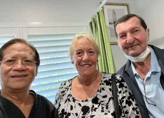 新州家庭医生邝耀文(Andrew Kwong,左1)和他的病人。 Source: Supplied