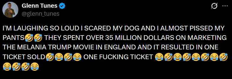 英国网友直接笑疯:我笑到声音大到把我家狗都吓了一跳,而且差点直接笑尿裤子????????他们在英国给《梅拉尼娅》这部电影砸了超过3500万美元做宣传,