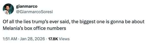 在川普说过的所有谎话里,关于《梅拉尼娅》票房的那句,估计会是最大的一个。