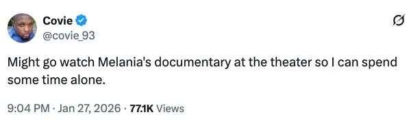 我可能会去电影院看《梅拉尼娅》的纪录片,这样就能一个人安安静静待会儿了。
