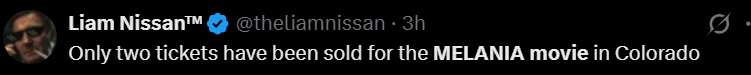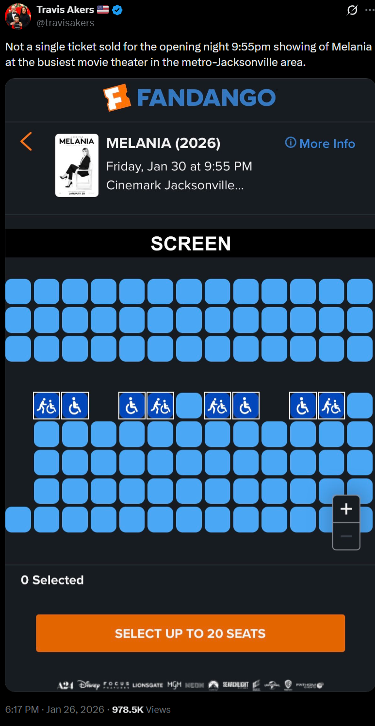 在科罗拉多州,《梅拉尼娅》这部电影一共就卖出了两张票。