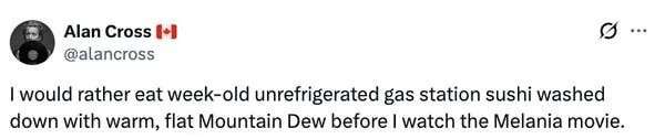 我宁可去吃在加油站放了一周、没冷藏的寿司,再喝温的、没气的Mountain Dew,也不想去看《梅拉尼娅》电影。