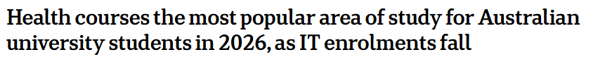 但2026年的最新数据显示,澳大利亚高校新生的选择正在悄然转向——“照顾人”的专业,正在重新赢得年轻人的青睐。