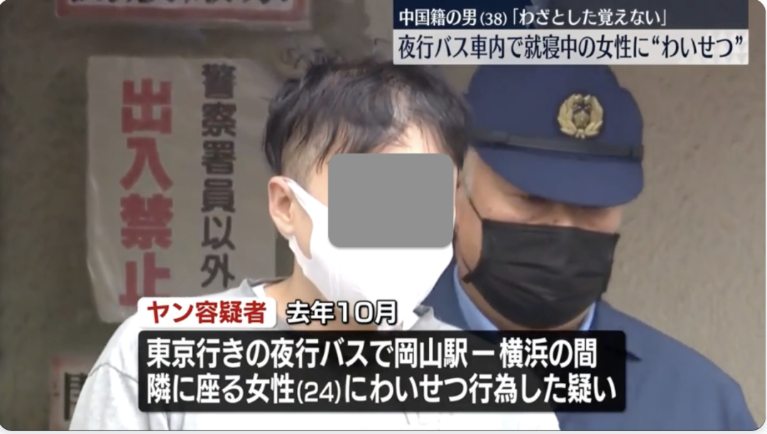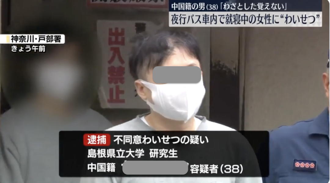 收藏中国38岁留学生在日本夜间巴士猥亵邻座24岁年轻女性!被捕后坚称:我只是睡懵了!