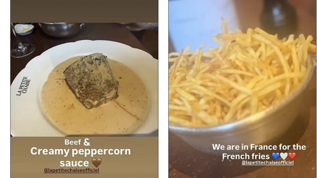 这次,他们的午餐还包括15欧元(125元)的汤,以及45欧元(375元)的奶油酱牛里脊。