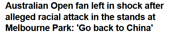 收藏“滚回中国去!”澳网赛场发生恶性种族歧视事件!亚裔母亲观赛遭恶语相向、竖中指!网上愤怒曝光