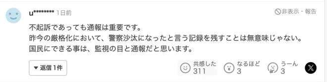 “就算最终不被起诉,市民举报也是很有必要的。留下案底并不是毫无意义的,对于这种犯罪,我认为大家能做的就是监视和举报。”