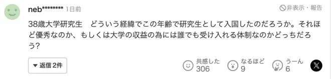“38岁研究生?他究竟有什么来头才会这个年纪作为研究生入学呢?是因为他过于优秀,还是这间大学一味只追求利益、谁申请都可以接受呢?”