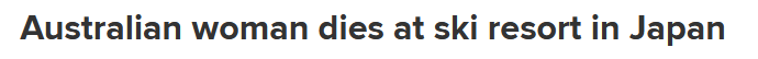 一名澳大利亚女子在日本滑雪胜地发生意外身亡。