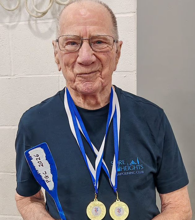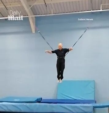 如今91岁的Peter,依然每周在索尔兹伯里的 Spire Heights 俱乐部 授课。他长期参与 特殊需求儿童 与 物理康复训练项目 的开发,用蹦床帮助不同年龄、不同身体状况的人恢复信心与力量。