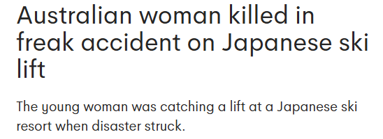 最新消息,一名22岁澳洲女子在日本游玩滑雪期间发生意外,惨死当场!