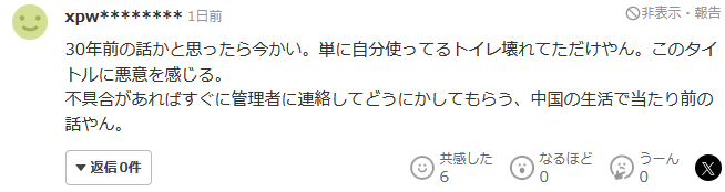 我还以为是30年前的事呢,原来是现在。只是自己用的厕所坏了而已。对这个标题感到恶意。