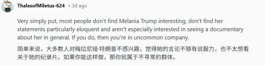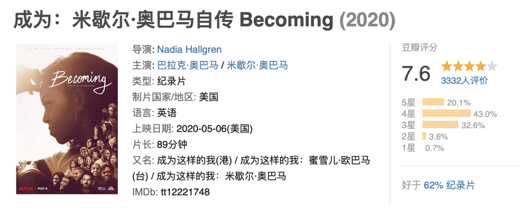 同样作为美国总特的夫人,前第一夫人米歇尔也拍过纪录片《成为》,口碑可谓是碾压现任。