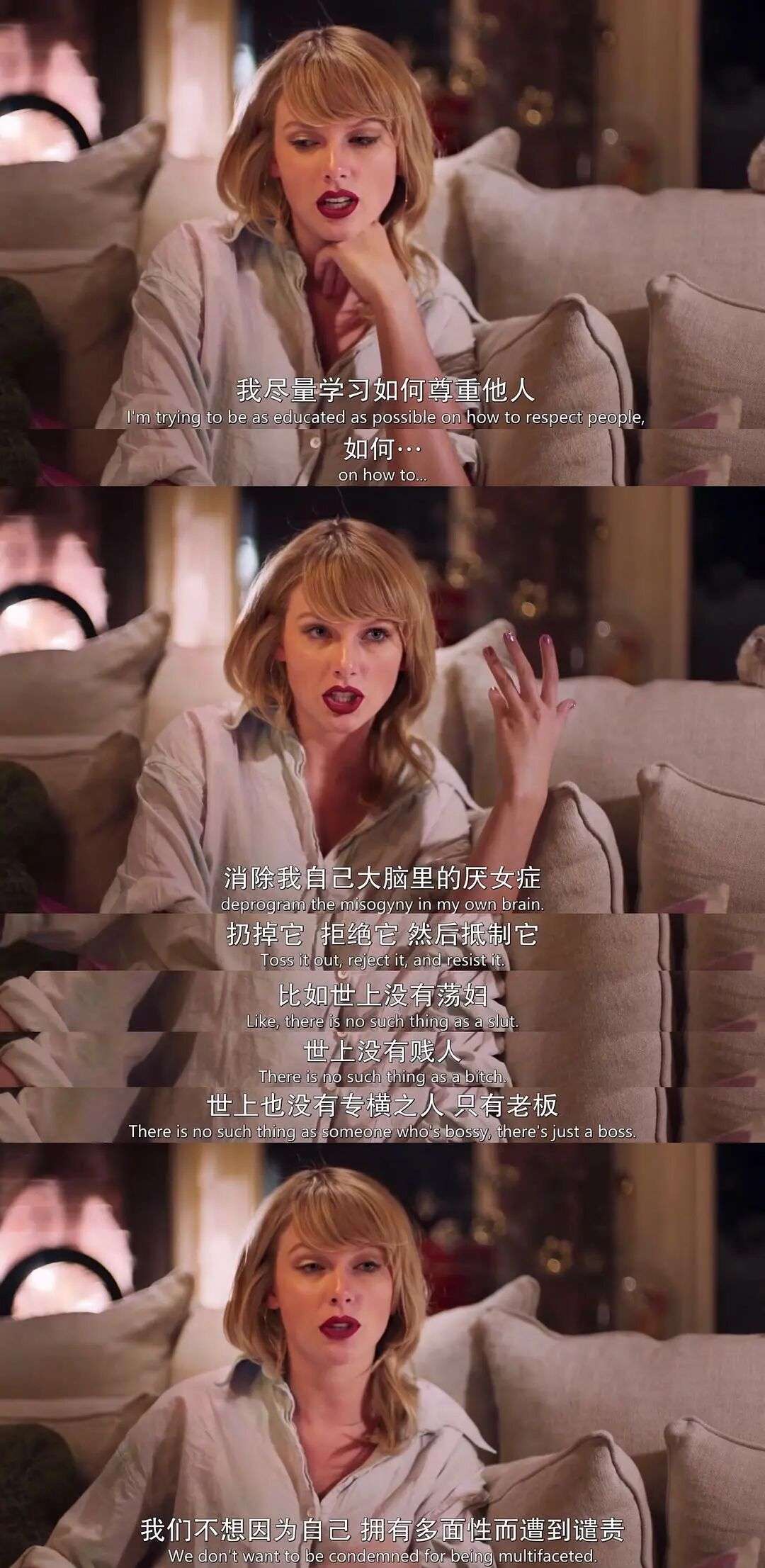 片中有一句话让我印象深刻,泰勒说:“我要好好吃饭,我看起来怀孕也比看起来病殃殃的好。”