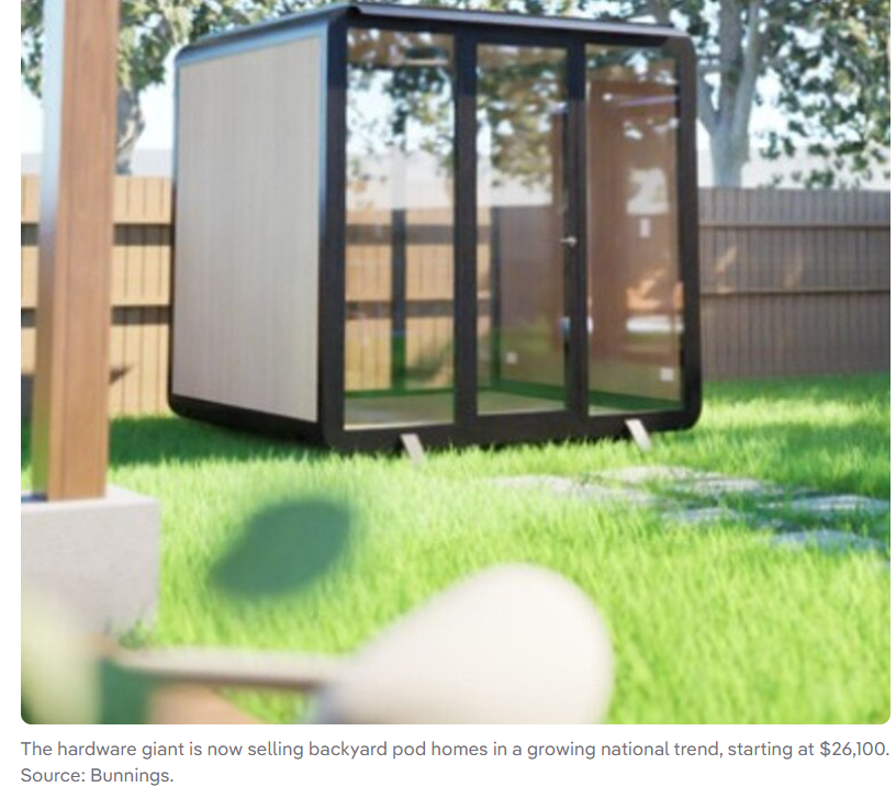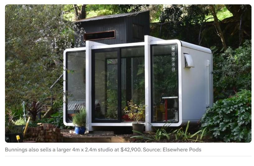Bunnings Warehouse已与一家创新型澳大利亚初创企业合作,推出紧凑型模块化住宅单元,其中许多设计巧妙地规避了传统建筑许可的要求。该零售商目前通过线上平台及店内"特殊订单"专柜销售Elsewhere Pods公司的平板包装住宅,提供两种型号:2.7米×2.4米规格售价26,100澳元,以及更大的4米×2.4米工作室规格售价42,900澳元。