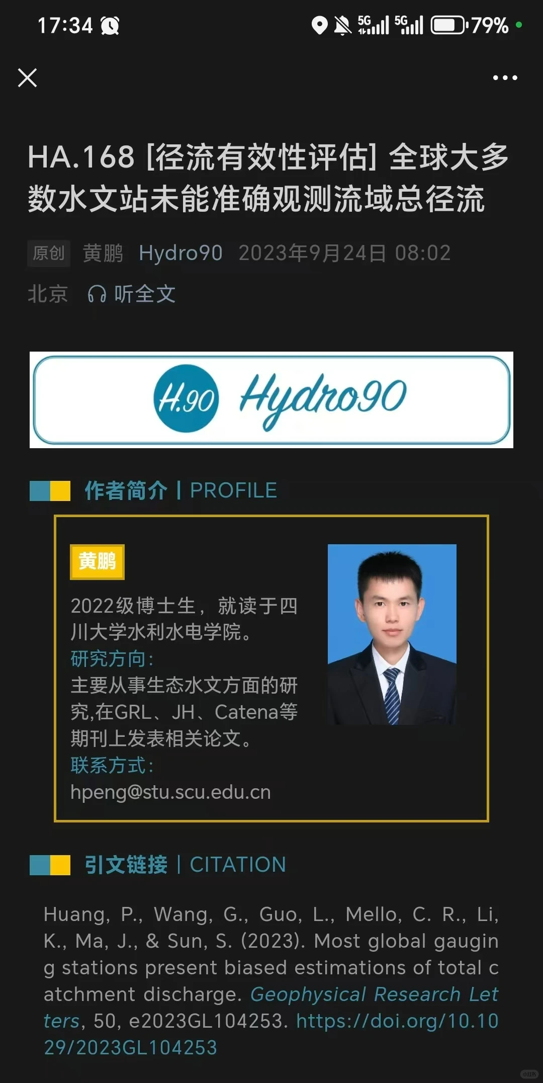 他今年28岁,2022年开始在四川大学在水利水电学院读博,他的研究方向是“可持续科学与生物技术”。