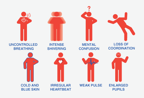 重度失温时人的肌肉协调能力几乎完全丧失,说话困难,皮肤也可能变蓝,严重的会导致心肺衰竭。