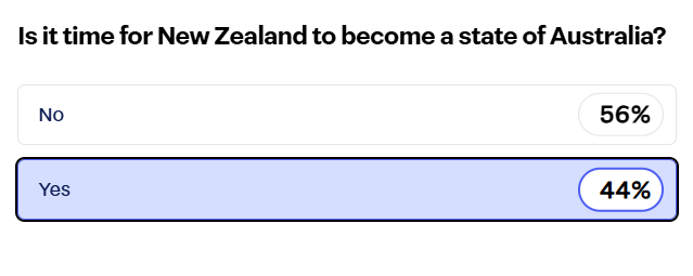 Stuff发起的投票显示,44%的新西兰人赞同并入澳洲。