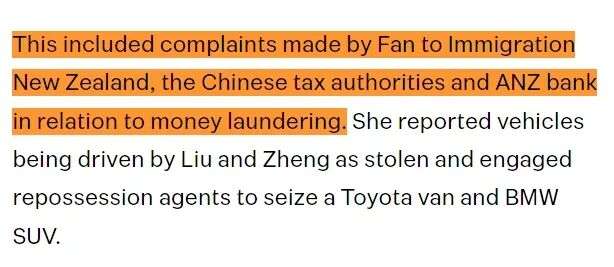 这些极端手段包括:Ping Fan向新西兰移民局、中国税务机关以及ANZ银行提出投诉,指控对方涉及洗钱。