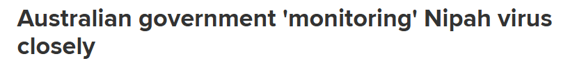针对尼帕病毒的潜在威胁,澳卫生部长Mark Butler表示“非常重视”,联邦政府正在密切监控事态发展。