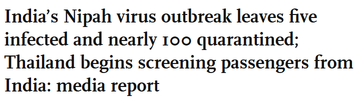 由于尼帕病毒曾是好莱坞电影《传染病》(Contagion)的灵感来源,此次出现确诊病例也引发外界担忧: