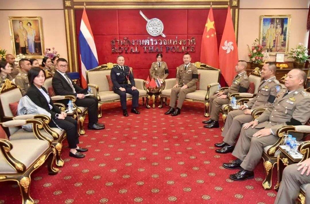 中国香港警务处处长在会谈中高度评价泰国警方在跨国执法合作中的专业能力,特别点名感谢泰国移民警察在2025年中期成功截获一名中国籍重大刑事嫌疑人。