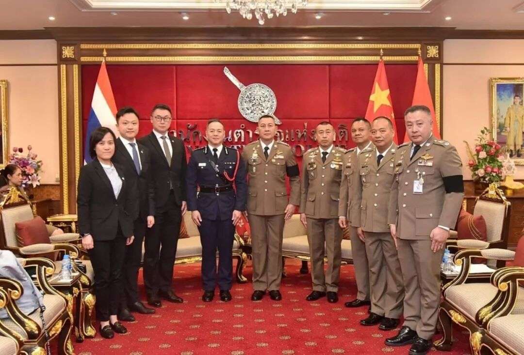 2月4日14时30分,在泰国国家警察总署,中国香港警务处处长周一鸣专程拜会吉滴叻·潘佩,代表中国香港警方,对泰国国家警察总署及泰国移民警察在多起重大跨国案件中的密切配合与高效执法,表达正式感谢。