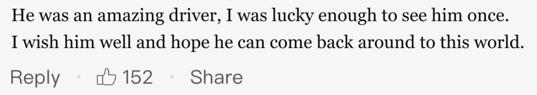 “他曾是超绝的车手,我有幸见过他一次。我祝他康复,希望他能回归。”
