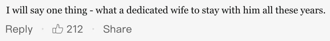 “我就说一件事——真是位付出太多的老婆,陪了他这么多年。”
