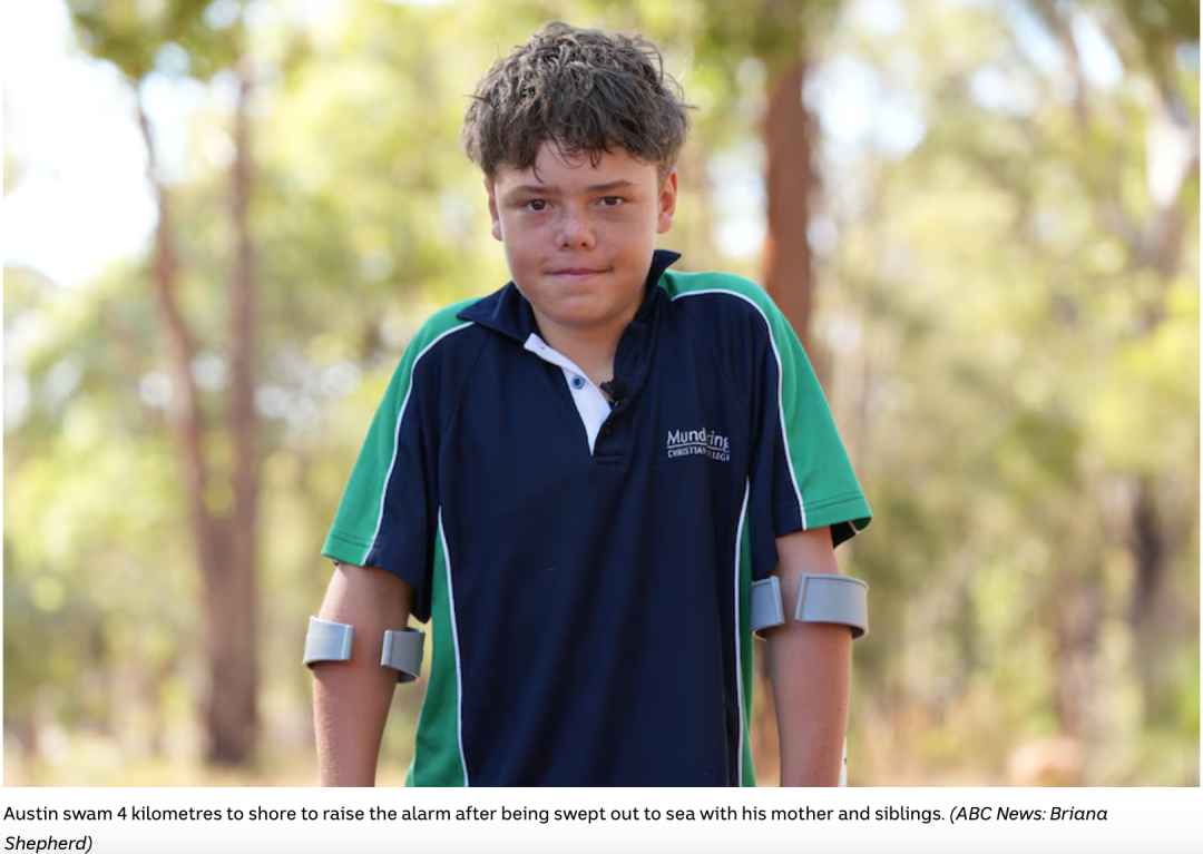 在西澳汹涌冰冷的海水中,一名13岁的男孩一边换着泳姿,一边在心里反复对自己说着这句话。支撑他独自游完4公里、又跑完2公里的,只有一个念头:母亲和弟弟妹妹还被困在海上。