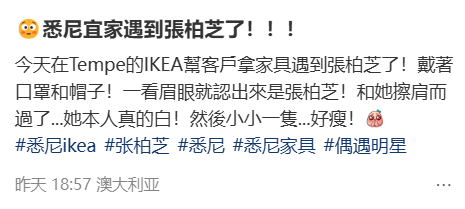 近日,澳洲可谓众星云集,就在最近,就有网友在悉尼的宜家家居商场内,偶遇了来自香港的知名艺人张柏芝及其长子Lucas!这段偶遇视频在网络上迅速传播,引发广泛关注。