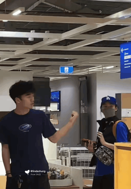 此后,她还分享了一段在宜家与Lucas的互动短视频:她手持一个蜜蜂玩偶,远远投进Lucas手拉的购物车内,场面十分温馨。