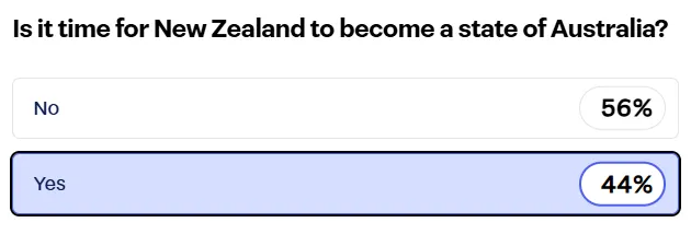 更令人意外的是,在这次发起的投票中,竟然有近一半新西兰居民同意了这个“亡国入澳”的提议。