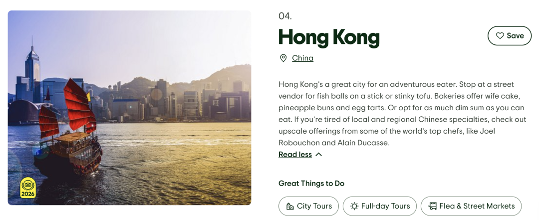 收藏2026年“全球最美味城市”排名公布!前10只有一个中国城市?澳洲没上榜!第一居然是这!上海第25!