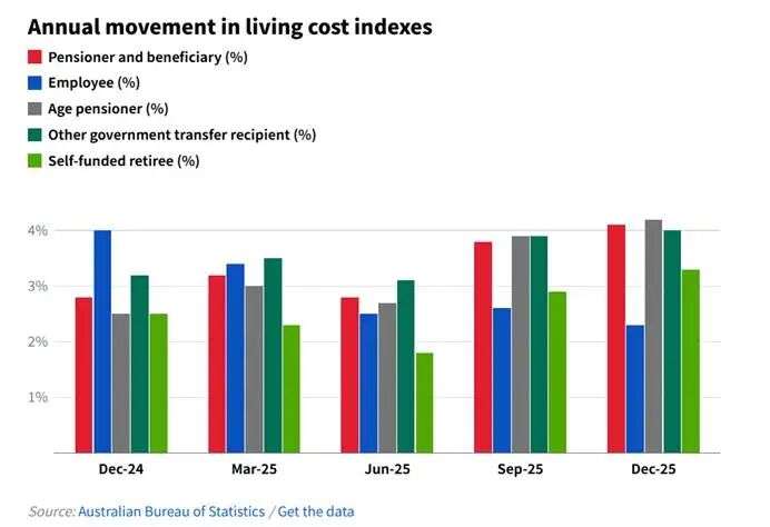 在所有家庭类型中,依赖政府支付的家庭(含养老金领取者、福利领取者)受打击最为严重,过去一年的生活成本涨幅至少达到4%,成为支出上涨最快的群体。