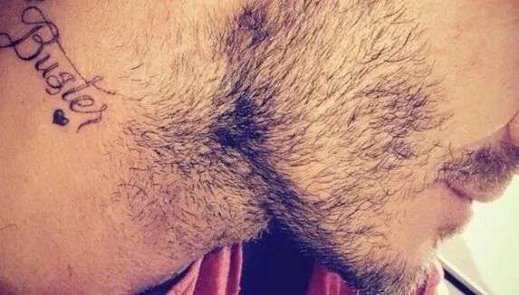 下方还有花体的“Love you bust”,Bust和Buster都是贝克汉姆小时候给大布取的昵称,这个纹身的意思就是“父亲是他人生的定心锚”。