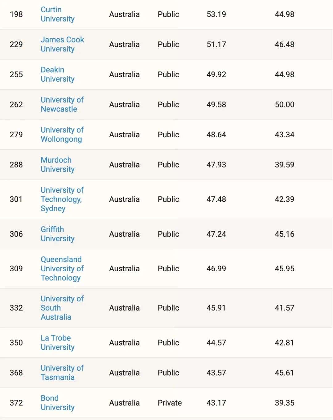 西澳大学在这个排名中,表现相当亮眼,拿下了世界第61,全澳第四!