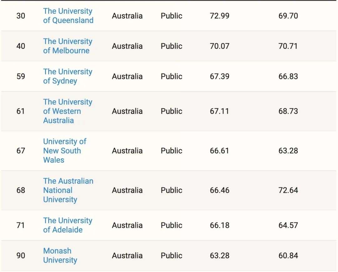 澳八大依旧是整整齐齐跻身前百,但在具体的排名上,却是来了一次彻底的大洗牌!