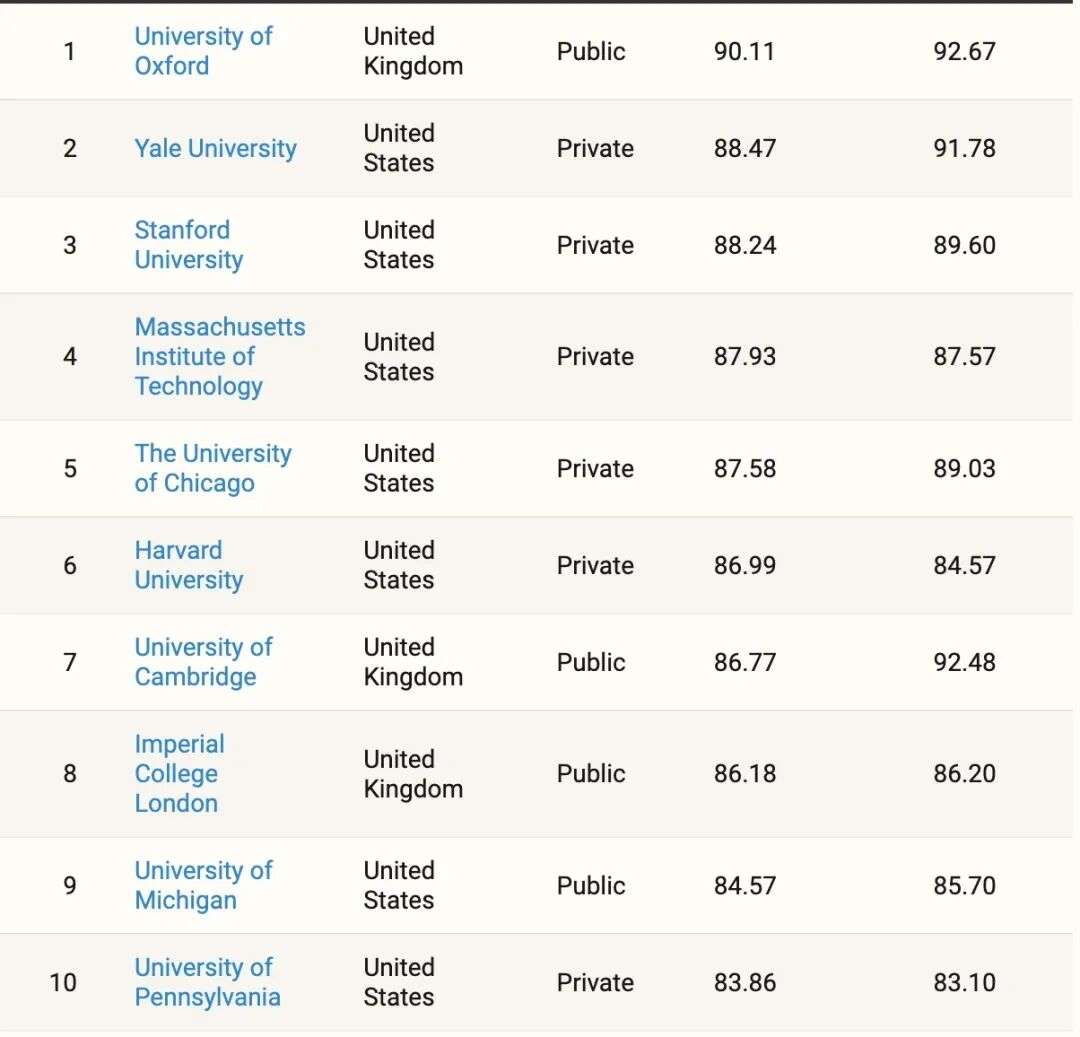 世界最强的前十席位,再度全部由英国和美国的高校占据!