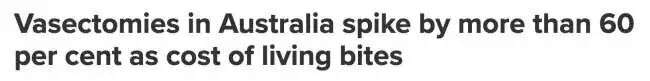 输精管结扎手术在澳大利亚蓬勃发展,许多专家认为生活成本上升可能是导致年轻男性接受手术的一个因素。