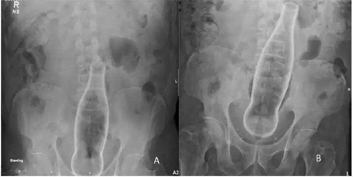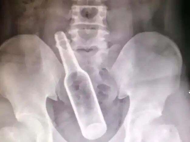 这位小哥24岁,他告诉护士自己腹痛难忍。被问及原因,小哥很坦诚,说自己把一个“大东西”塞进了肛门,结果再也取不出来了,这才造成他极度不适。