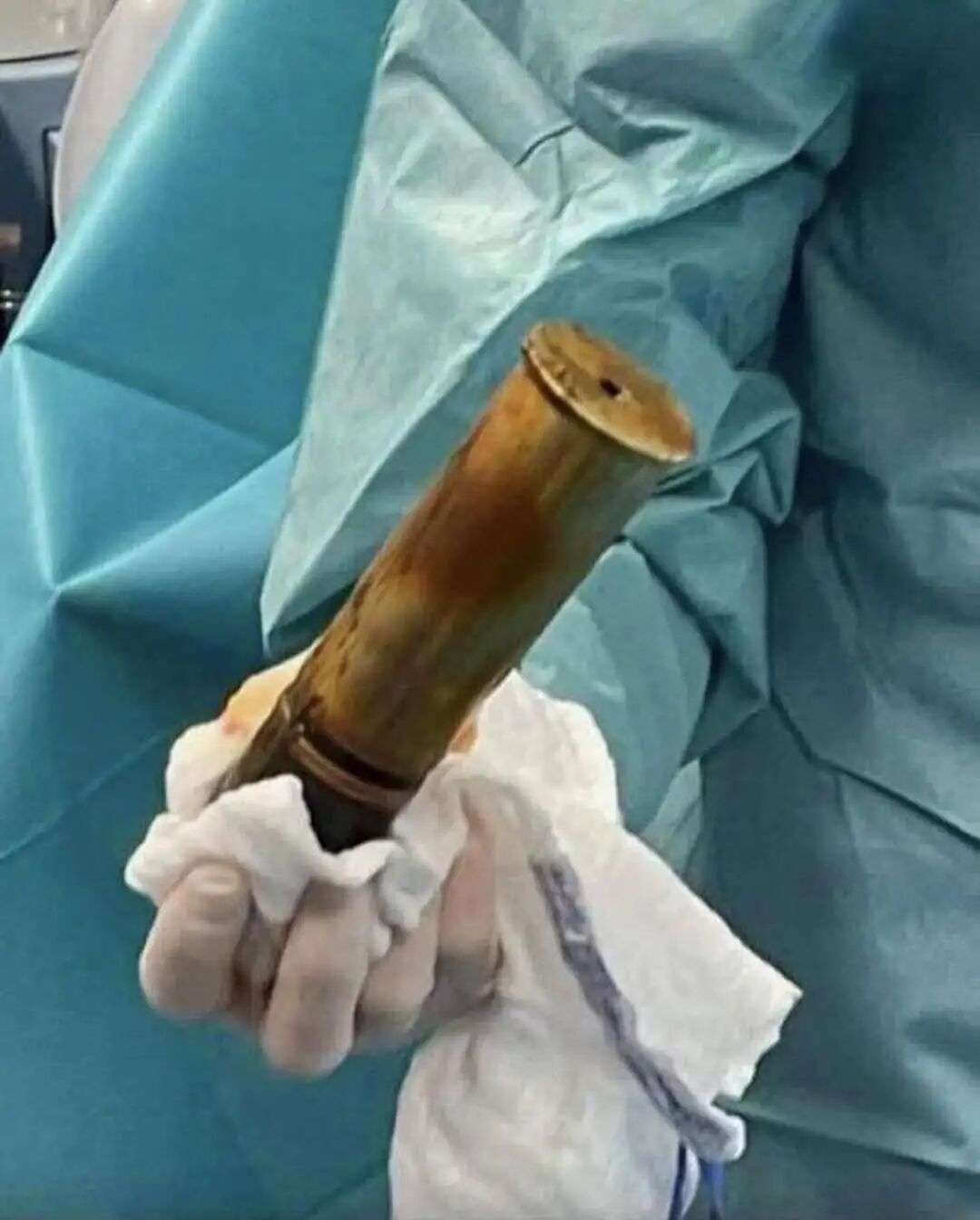 在这场手术中,医生们准备充分,看起来对小哥的异物取出胜券在握。但当看到异物的时候,所有人都倒吸一口凉气——是炮……弹??!