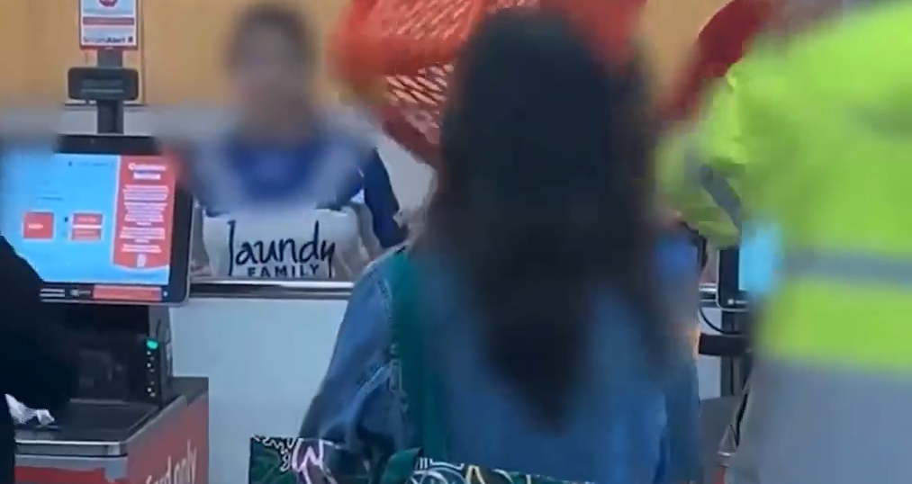 视频画面中,两名少女在Coles超市自助结账区附近不断嘲讽正在扫码结账的顾客,其中还包括一名Uber的外卖骑手。