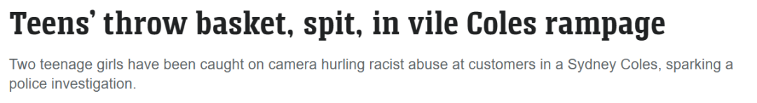 超市一名发言人表示:“Coles超市绝不容忍门店内出现辱骂他人或反社会的行为。”