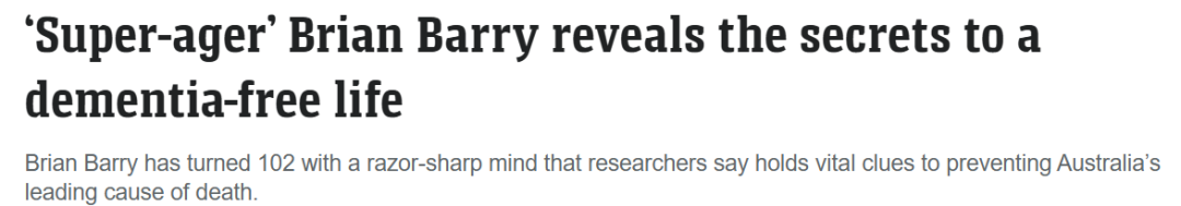 研究人员表示,一位102岁依然思维敏捷的超级老人Brian Barry,可以提供预防痴呆症的重要线索!
