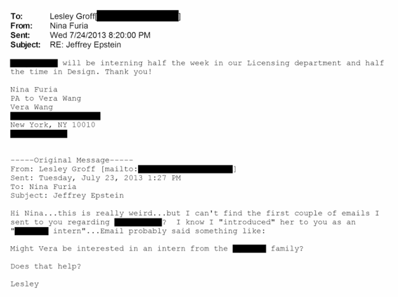 邮件内容:Vera Wang想要一名来自阿涅利家族的实习生吗?