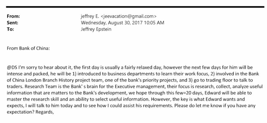 幽默的是,邮件里甚至连中行全名都懒得打,就写了个“the bank”,给爱泼斯坦和联系人气得够呛。