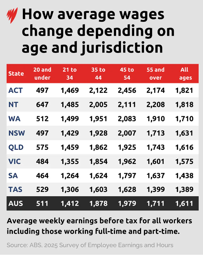 相比之下,南澳20岁及以下年轻人的周薪仅约464澳币,处于全澳最低水平。