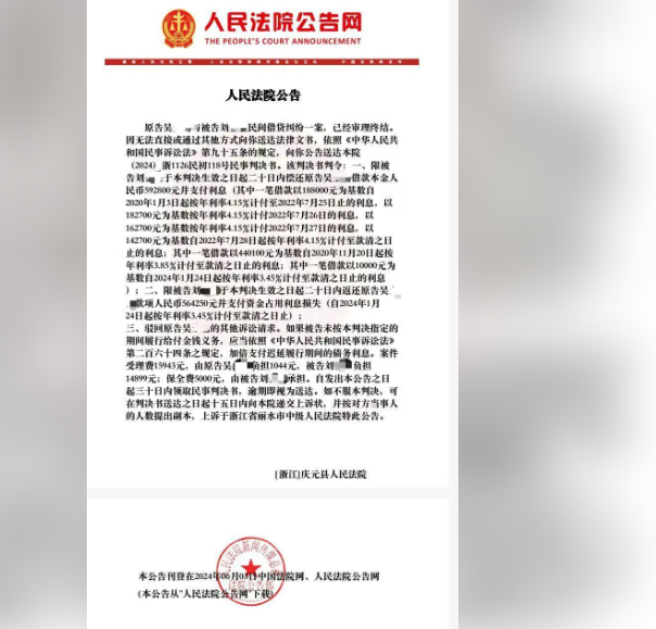 根据浙江省庆元县人民法院2024年的民事判决:法院认定双方存在民间借贷关系,并判令刘某星返还借款本金及相关款项。