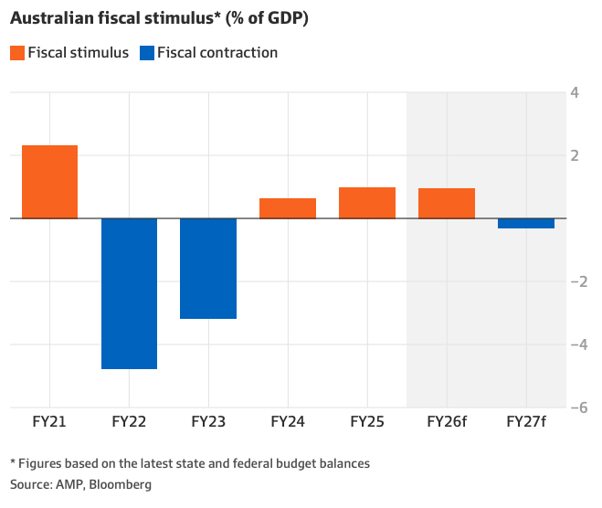 2025—26财年,联邦和州政府合计将向经济注入相当于GDP约0.9%的财政刺激,而这一规模在上一年并不存在。